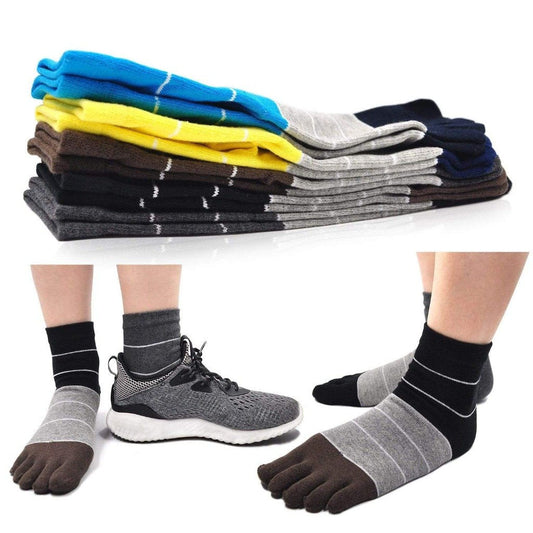 PUTUO Stripes Executive Athletic 5 Finger Socks for Men, 4 Pairs