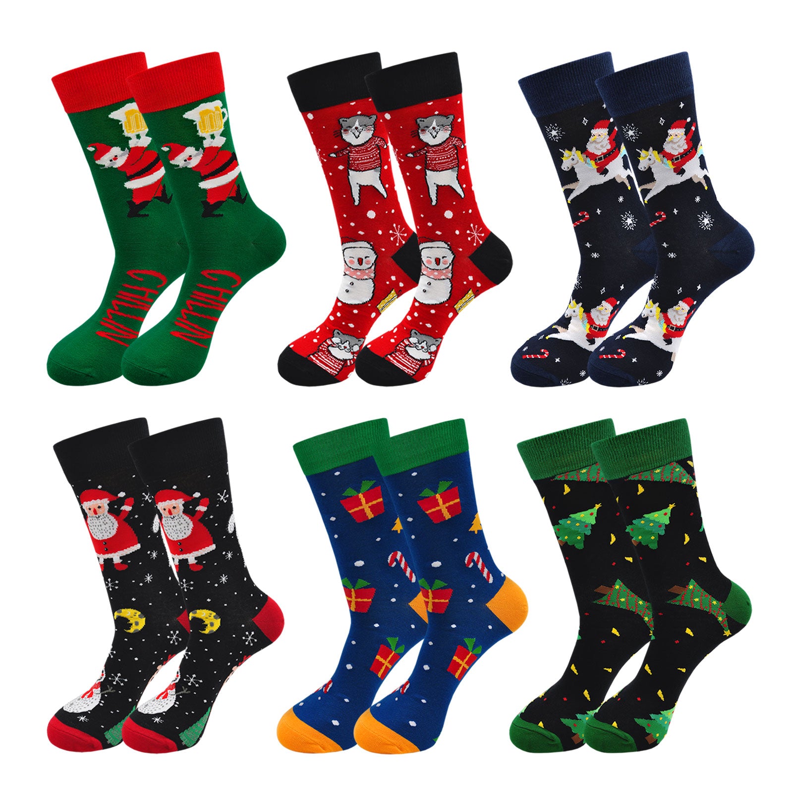 Our christmas socks come in a set of 6 pairs, each featuring unique and fun Christmas designs that will brighten up your holiday season.
