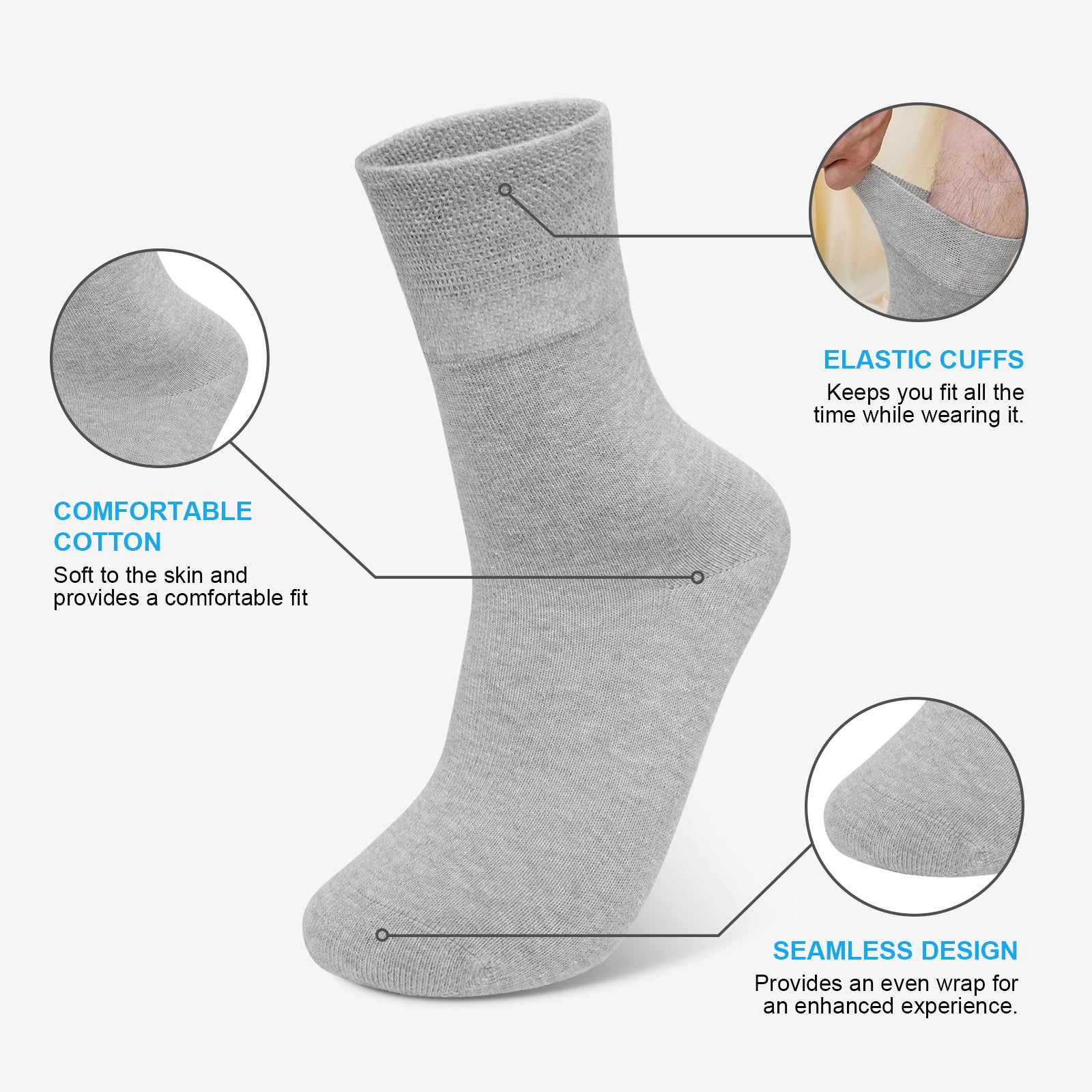 Mens Socks, PUTUO Mens Dress Socks, Casual Business Soft Breathable Cotton Socks for Office Leisure Walking Home, 5 Pairs